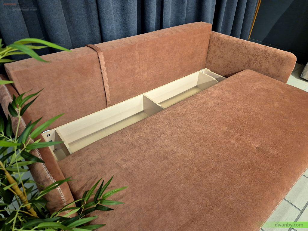 Модель «Клер» – универсальный диван, поскольку путем трансформации с помощью простого и надежного механизма «тик-так» превращается в комфортную двуспальную кровать. Механизм не испортит напольное покрытие. Пружинный блок обеспечивает анатомическое положение тела во время сна, благодаря чему отдых полноценный и здоровый. Удобства дивану добавляет наличие ниши для белья, в которой можно хранить постельные принадлежности.