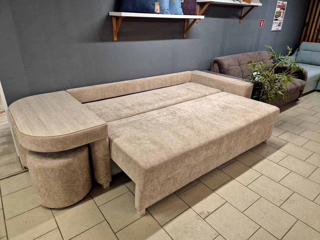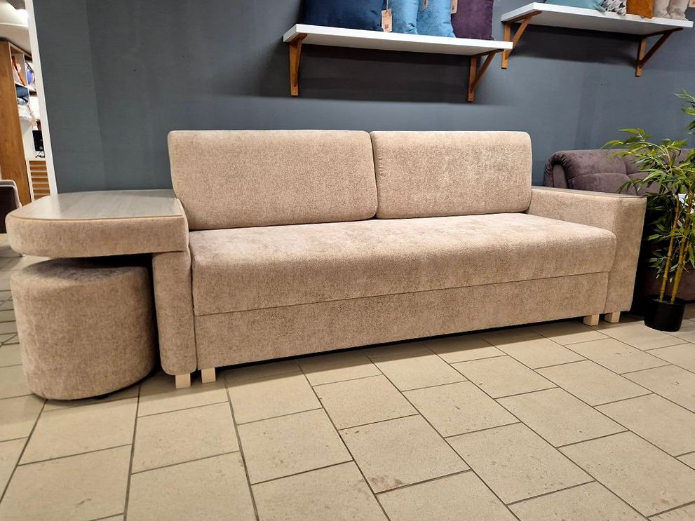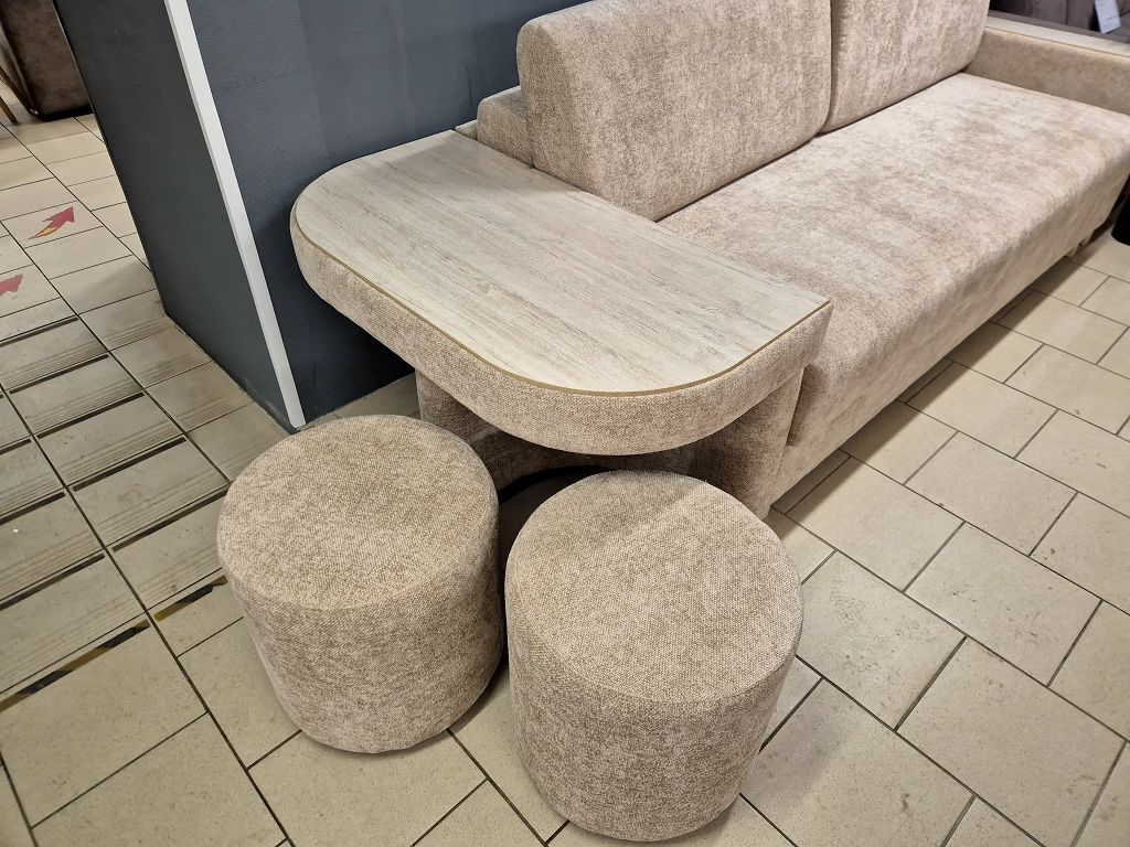 Удобный диван для отдыха и ежедневного сна. Механизм трансформации Тик-так позволяет быстро превратить диван в просторную кровать с упругим матрасом. Модель оснащена ящиком для хранения белья, а также оборудована столиком в комплекте с двумя удобными банкетками, что значительно расширяет функциональные возможности дивана.