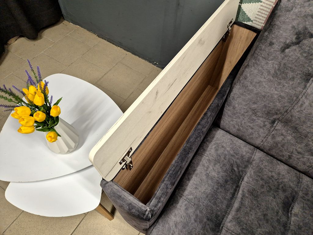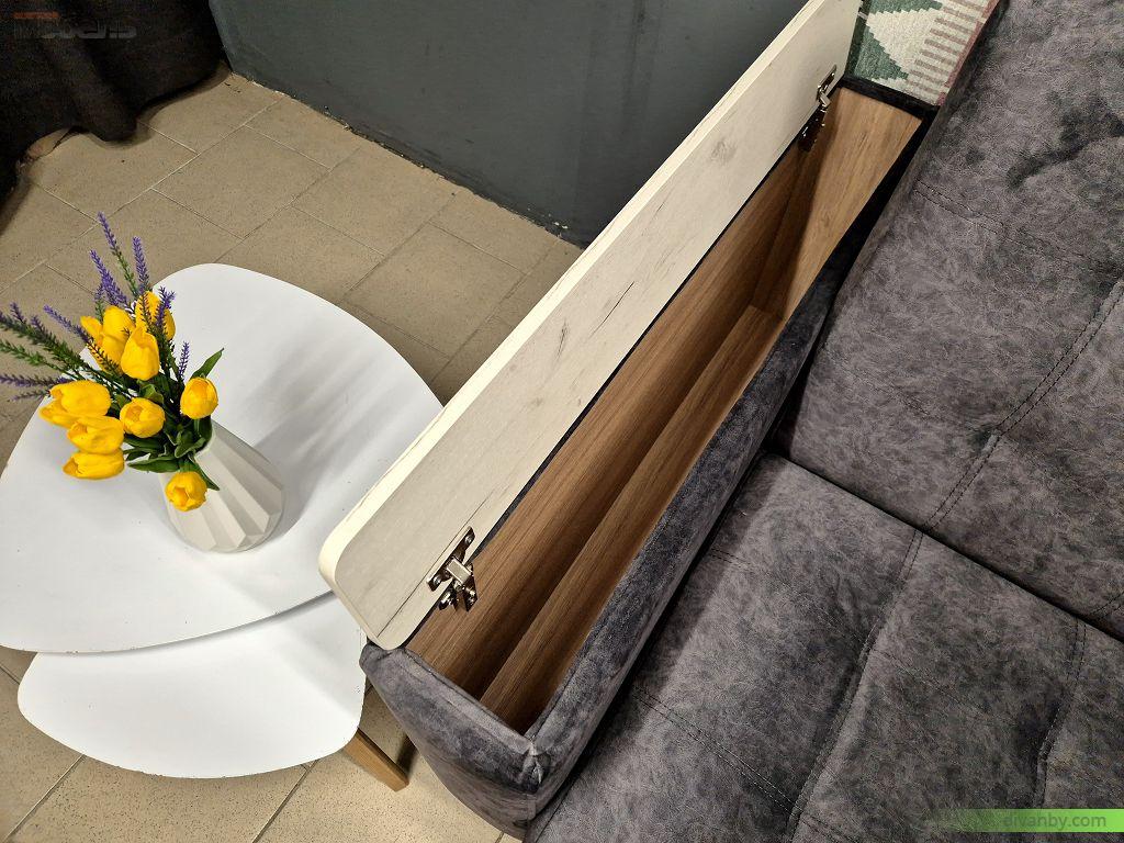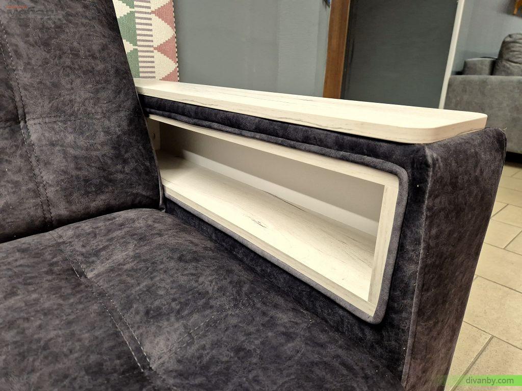 - книжная полка внутри одного подлокотника, скрытая ниша внутри второго.