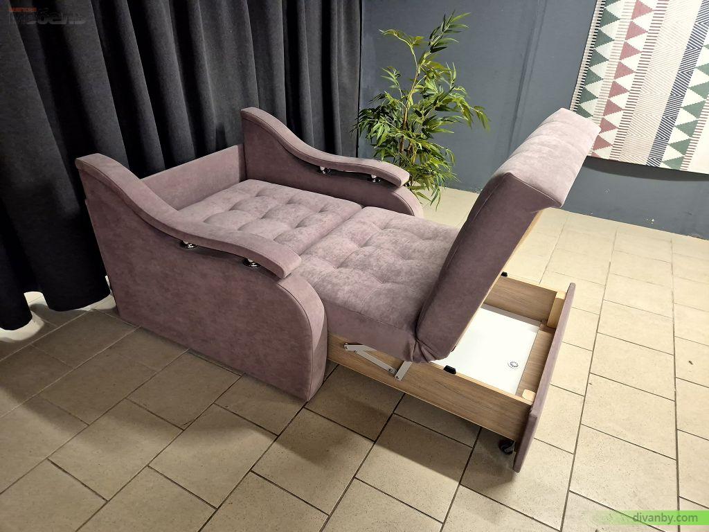 Эврика В3 - это вариант стандартной модели с узкими подлокотниками и декором в виде изогнутой накладки. Каркас модели представляет собой прочный и легкий в раскладывании механизм трансформации, который считается одним из лучших, раскладывающихся вперед механизмов и создающих удобное спальное место.