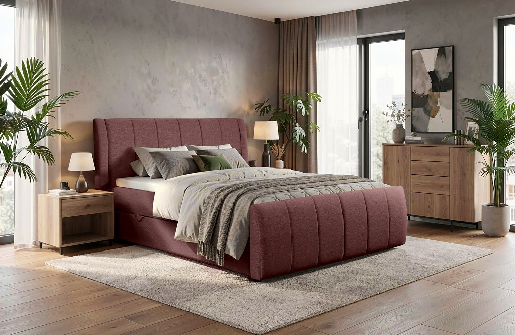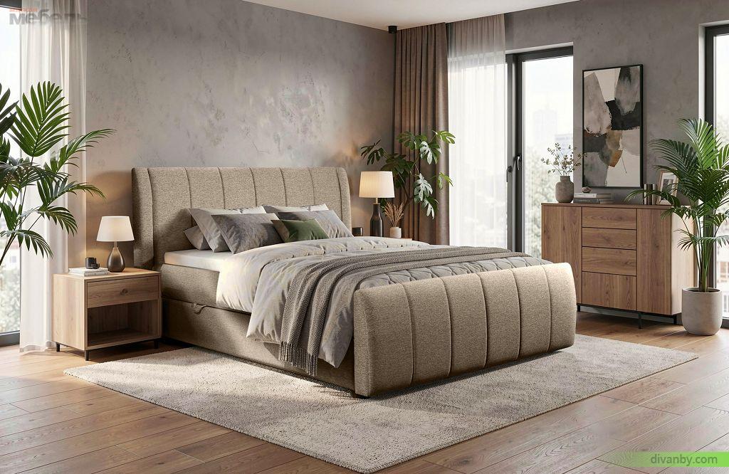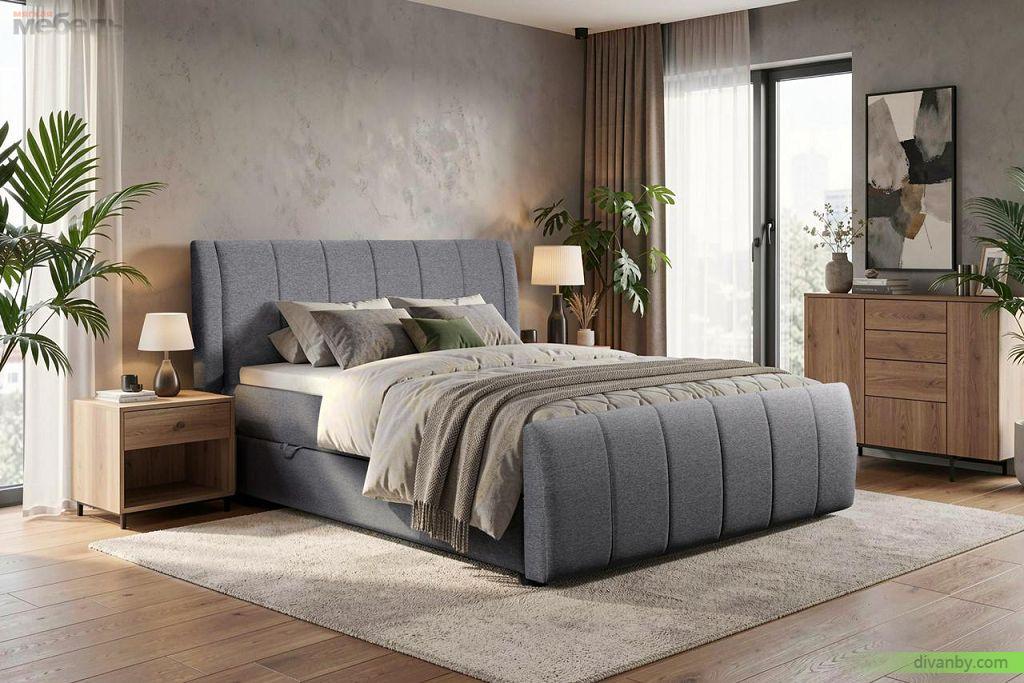 В оформлении изголовья и каркаса кровати применяется более широкий ассортимент материалов, нежели для изготовления основания: мягкая обивка (ткань, кожа), ламинированная, массив дерева, металл для изголовья или каркаса.