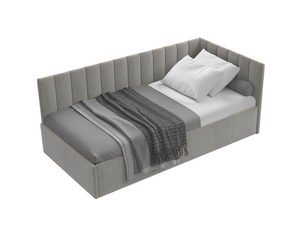Универсальная угловая кровать с мягким изголовьем: устанавливается на левую или правую сторону.