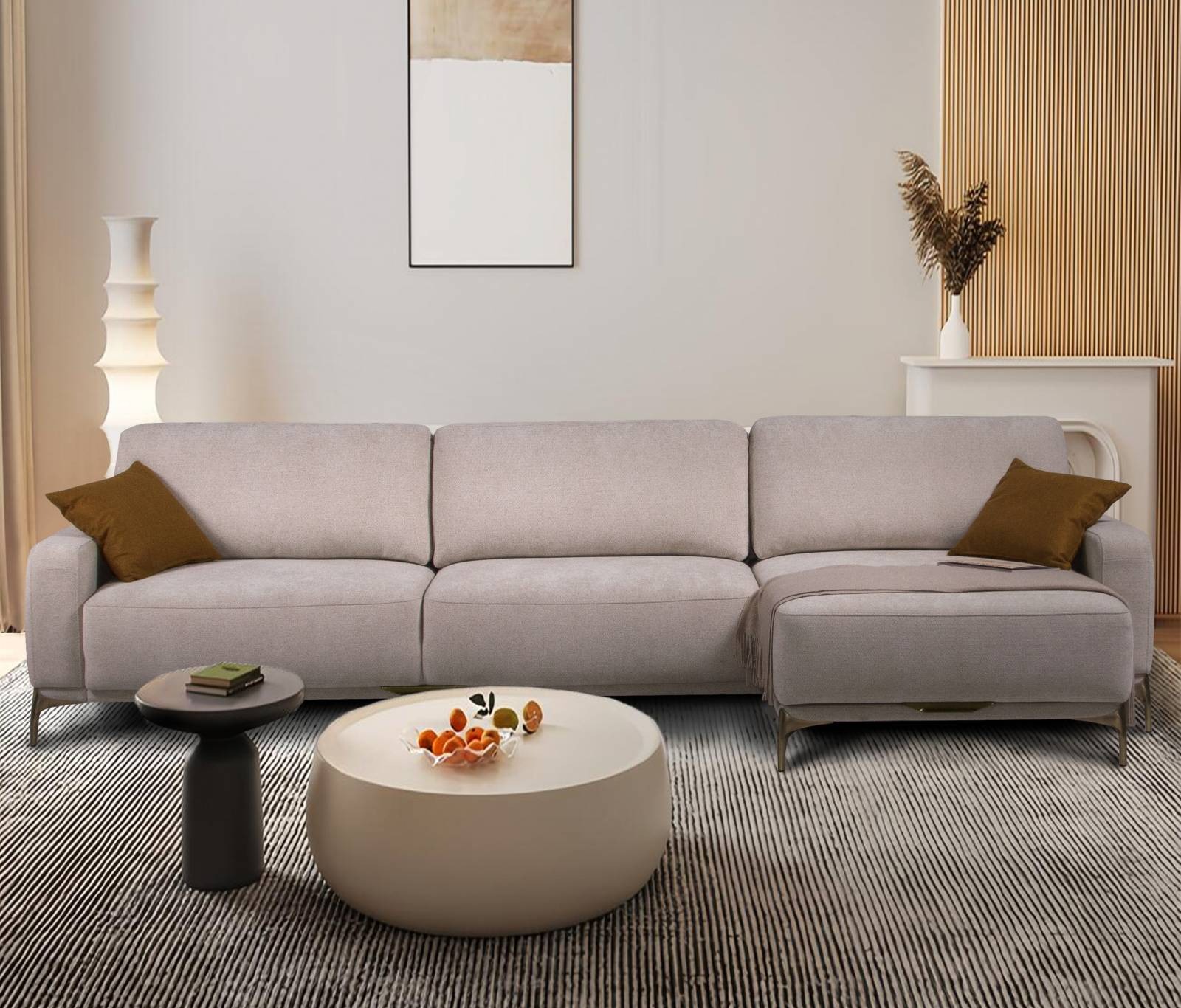 Механизм трансформации тик-так трансформирует диван в кровать шириной 152см, длина будет зависеть от комплектации модулей в диване. Причём наполнение в двух частях, составляющих спальное место абсолютно одинаковое, а это означает, что отдых на таком спальном месте будет комфортным! Ещё один плюс – наличие ниши для хранения. Модульный диван «Фит лайт» – это практичные решения для вашей индивидуальности.