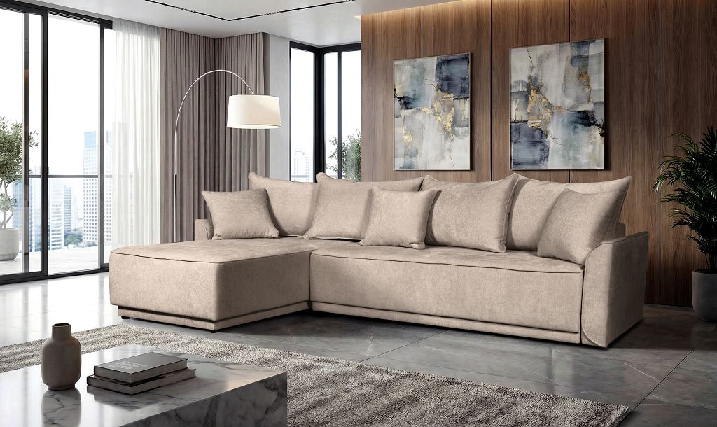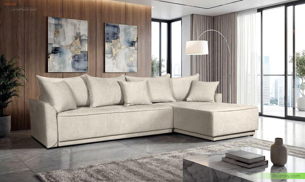 Удобный и мягкий диван «Вектор» с удобной раскладкой подарит максимально комфортный отдых и сон. Его плавные формы, комфортная посадка, большое количество приспинных и декоративных подушек и мягкая ткань создают ощущение уюта в интерьере. Декор в виде канта на торцах приспинных подушек, подлокотников, декоративных подушек придают дивану оригинальность. Диван состоит из частей, которые трансформируются независимо друг от друга и образуют большое спальное место.