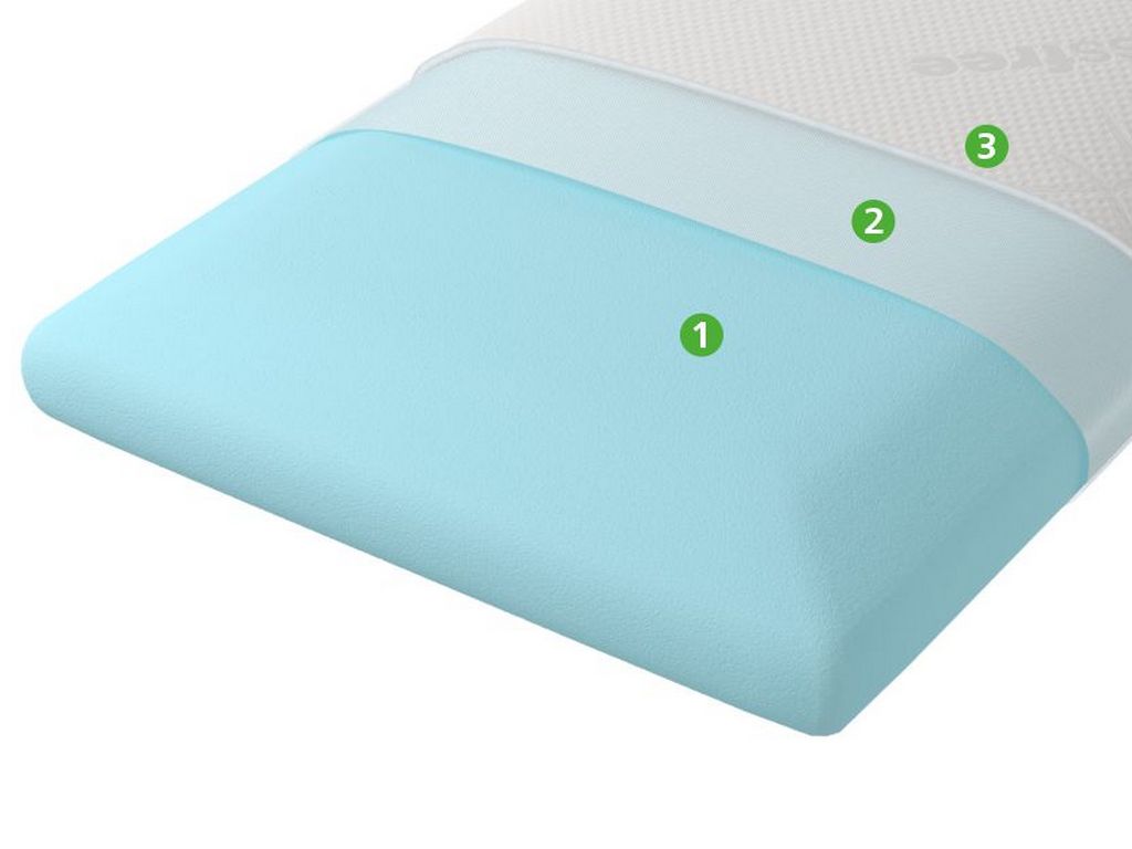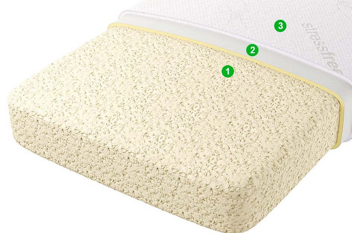 Наволочка - оболочка. Состоит из цельного пласта пены с эффектом памяти - MemoryFoam, дублированного хлопковым полотном.