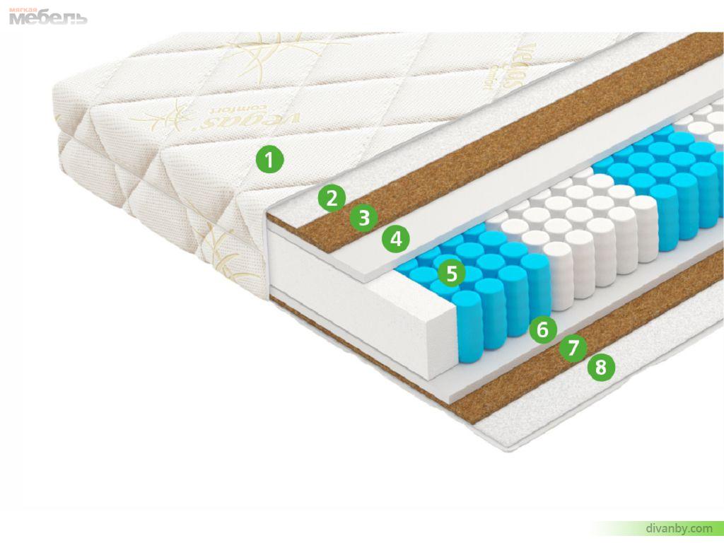 Кокосовая койра. Натуральный материал из спрессованных волокон кокосового ореха, пропитанных латексом. Используется для придания матрасу жесткости.