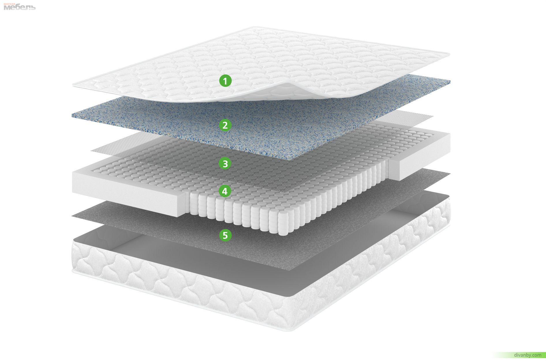 Односторонний мягкий матрас с блоком зависимых пружин Bonnell и слоем эластичного материала AirFoam. Практичное недорогое решение.