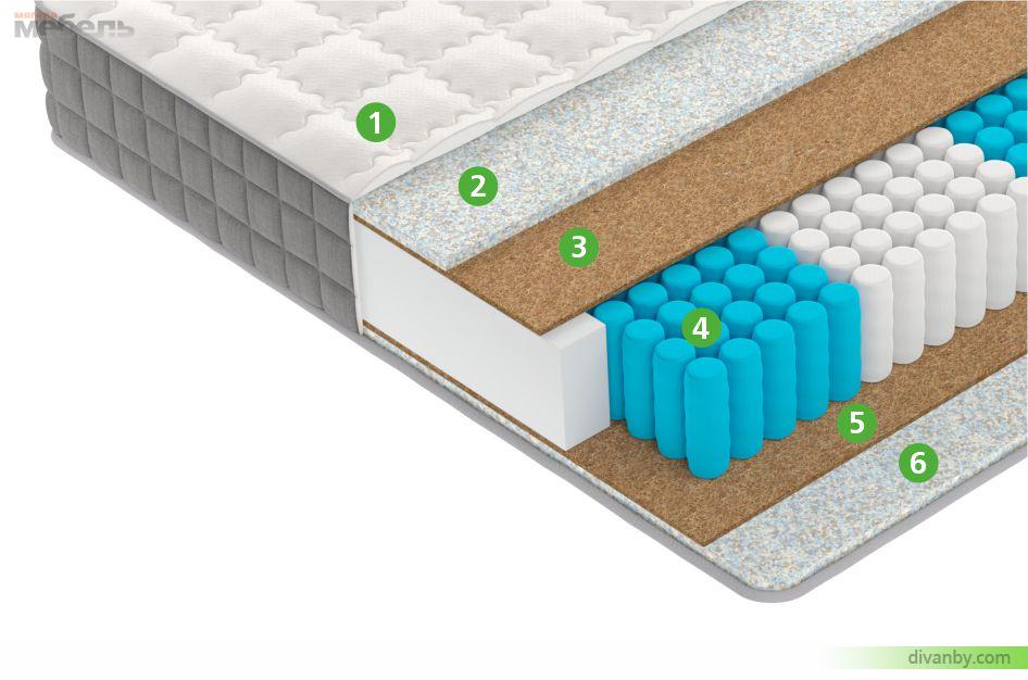 Термоволокно: защитная прослойка из термопресованного волокна, разделяет пружинный блок и мягкие наполнители, придавая дополнительную жесткость.