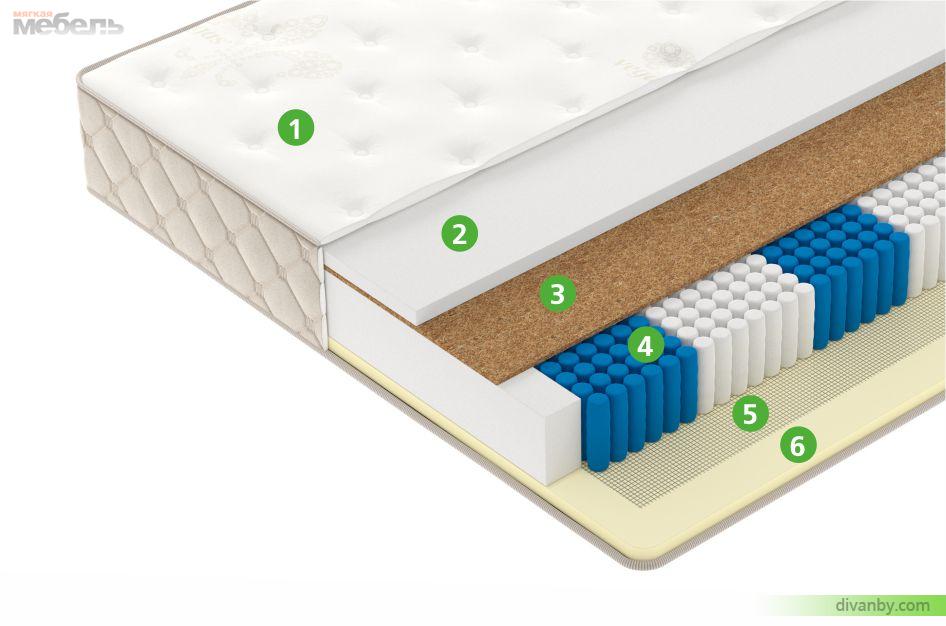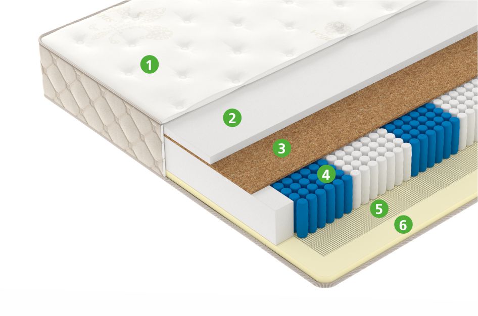 Кокосовая койра. Натуральный материал из спрессованных волокон кокосового ореха, пропитанных латексом. Используется для придания матрасу жесткости.