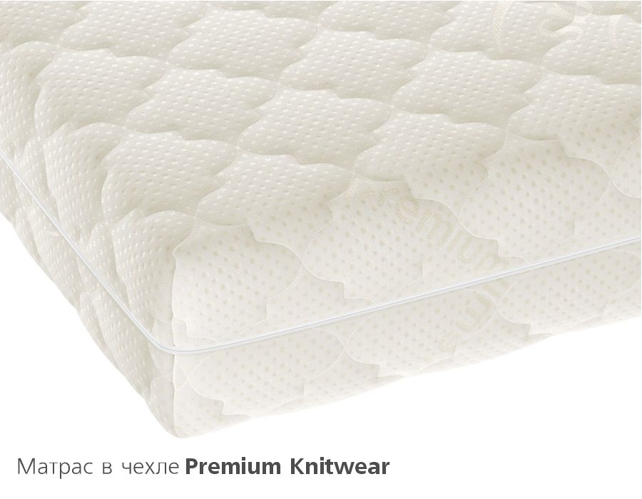 Цельный чехол из эксклюзивной ткани Premium Jacquard имеет роскошный внешний вид благодаря плотному жаккардовому плетению и бурлету из мебельного велюра благородного жемчужного оттенка. Матрасы также доступны в съемном чехле Premium Knitwear (премиум трикотаж) для тех, кому важно наличие съемного чехла (платная опция).
